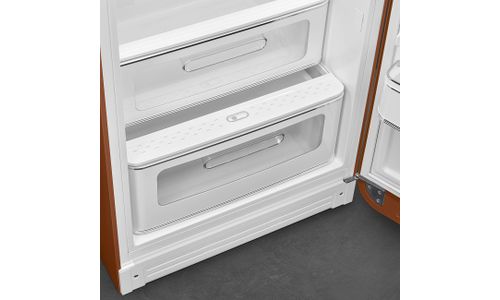 De originele gekleurde FAB28 koelkast is meer dan zomaar een koelkast. Hij domineert zijn omgeving, net als de zetel of verlichting in je woonkamer. Smeg heeft ook een reeks andere toestellen ontwikkeld met exact hetzelfde vintage-thema: koelkasten in verschillende maten en met verschillende capaciteiten, diepvriezers, wasmachines en vaatwassers. Altijd suggestief en eclectisch, ze zijn de referentie van de "Made in Italy" design kwaliteit die over de hele wereld beroemd is om zijn mix van kunst en functionaliteit.
