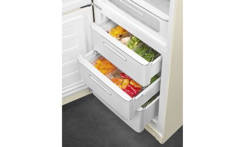 De originele gekleurde FAB28 koelkast is meer dan zomaar een koelkast. Hij domineert zijn omgeving, net als de zetel of verlichting in je woonkamer. Smeg heeft ook een reeks andere toestellen ontwikkeld met exact hetzelfde vintage-thema: koelkasten in verschillende maten en met verschillende capaciteiten, diepvriezers, wasmachines en vaatwassers. Altijd suggestief en eclectisch, ze zijn de referentie van de "Made in Italy" design kwaliteit die over de hele wereld beroemd is om zijn mix van kunst en functionaliteit.
