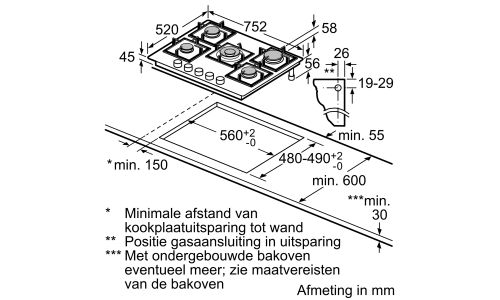 ++ Type kookplaat: Gas ++ Breedte: 75,20 cm ++ Aantal kookzones: 5 ++