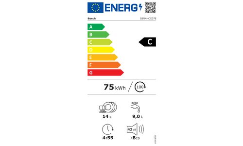 Vaatwasser Serie 4 Vol. integ. - 60 x 86,5 - 92,5 cm Klasse C, Home Connect, 6 progr, 5 functies, 86,50 cm, warmtewisselaar, kuip inox, 9,0 l, 42 dB, besteklade, Flex korven, Rackmatic 3, 7 segments display direct select, InfoLight red C