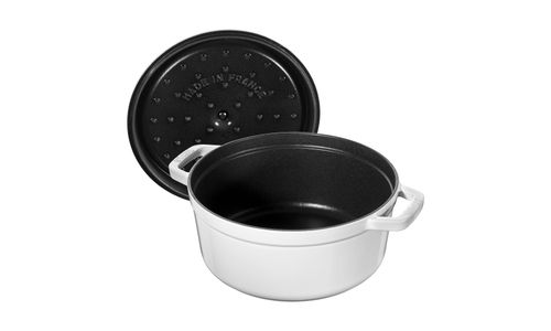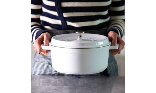 De STAUB Dutch oven/cocotte is onovertroffen voor het langzaam garen van vlees en groenten tot in de perfectie, en voor het sudderen van stevige stoofschotels en soepen. Gietijzer heeft een uitzonderlijke warmtebehoud, waardoor de pan gelijkmatig verwarmt. Met een zwaar, goed sluitend deksel dat vocht vasthoudt en kleine bultjes aan de binnenkant van het deksel die een regenwoudeffect creëren en sappen gelijkmatig teruggeven aan het eten, kunt u elke keer dat u deze pan gebruikt, smaakvolle, perfect gegaarde gerechten verwachten.