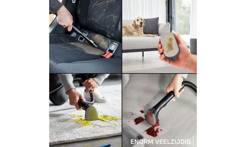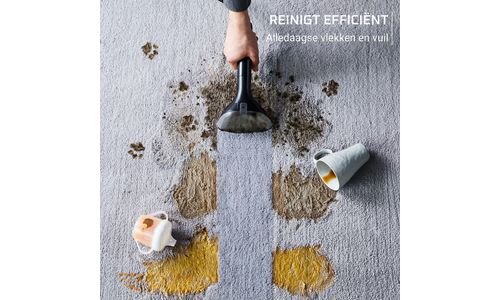- Dankzij de verwisselbare zuigmonden en het grote bereik maak je schoon op tapijten, sofa's, auto-interieurs, matrassen en meer