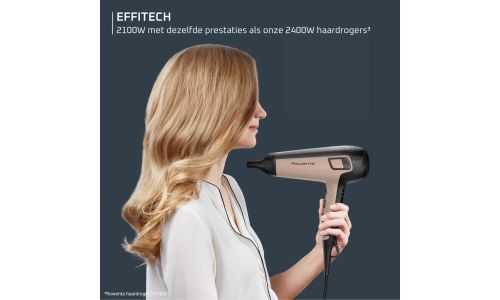 • Effitech-technologie: efficiënt drogen, 2100W verbruik met prestaties zoals 2400W