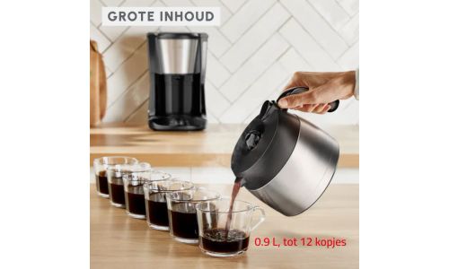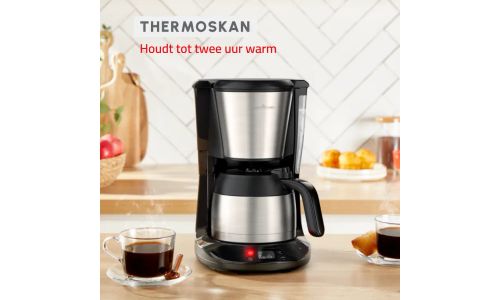 - Koffiezetapparaat met filter en thermoskan dat tot vier uur lang een perfecte temperatuur, smaak en aroma behoudt