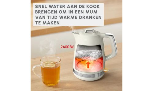 Het vermogen van 2400 W zorgt ervoor dat je waterkoker snel opwarmt, zodat je in een handomdraai van hete dranken kunt genieten. Ideaal voor drukke ochtenden.