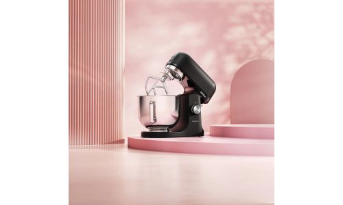 De keukenmachine kMix KMX751ABK Kenwood in zwart combineert kracht met veelzijdigheid voor bakken en koken. Met een motor van 1.000 watt en een roestvrijstalen mengkom van 5 liter verwerk je eenvoudig zowel kleine als grote hoeveelheden deeg en beslag. De machine heeft traploos instelbare snelheden, waardoor je nauwkeurig kunt kloppen, kneden en mixen. Dankzij de meegeleverde K-klopper, deeghaak en ballongarde gebruik je altijd het juiste hulpstuk voor elk recept. De spatbescherming voorkomt knoeien, terwijl de metalen behuizing zorgt voor stabiliteit en duurzaamheid. Accessoires zijn vaatwasserbestendig, wat schoonmaken makkelijker maakt. Met een gewicht van 9,1 kilo staat deze keukenrobot stevig en stijlvol in iedere keuken.