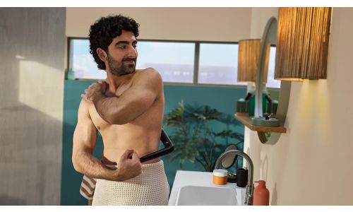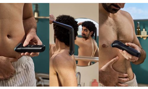Scheer uw hele lichaam glad en zacht, zelfs de intieme gedeelten, zonder in te leveren op huidcomfort. De 3 lengtestanden bieden veelzijdigheid en de achterbevestiging helpt bij moeilijk bereikbare plaatsen.