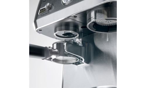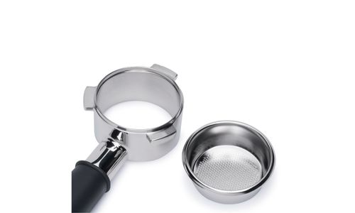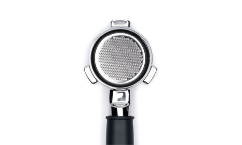 De platte bodem van de portafilter zorgt voor een gelijkmatig aandrukken, wat een gebalanceerde extractie creëert.