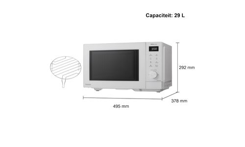 Benut je aanrecht optimaal en haal het maximale uit je GD38 grill-magnetron. De buitenafmetingen zijn slechts 495 x 378 x 292mm, maar de binnenkant heeft een inhoud van 29 liter met een draaiplateau van 288 mm. Dit betekent dat deze Panasonic-magnetron met grote capaciteit in een 20% kleinere ruimte past*!