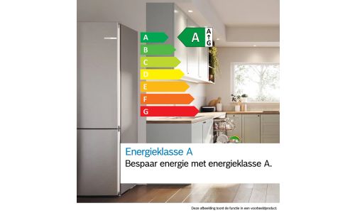 2Voetnoot 2: Ten minste 10% energiezuiniger (101 kWh/jaar) dan de grenswaarde (112 kWh/jaar) van energie-efficiëntieklasse A, gebaseerd op interne tests uitgevoerd volgens gedelegeerde EU-verordening 2019/2016, met een standaard temperatuurinstelling van 4°C voor de koelkast en -18°C voor de vriezer.