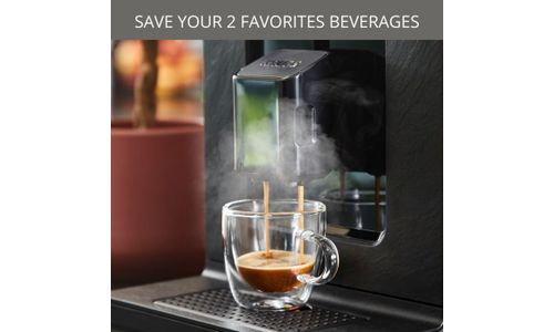 Een espressomaker en cappuccinomachine die u de mogelijkheid geven om uw dranken naar wens aan te passen: Pas de koffiesterkte naar smaak aan, stel de hoeveelheid in, voeg een extra vleugje toe en bewaar tot twee favorieten.