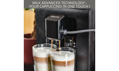 Maak de beste cappuccino en latte macchiatto met één druk op de knop dankzij de Milk Advanced-technologie. Maak kennis met een moeiteloos proces dat tot twee dranken op hetzelfde moment kan maken, allemaal met één druk op de knop.