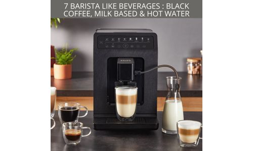 Maak kennis met KRUPS Evidence Eco-Design, de eerste automatische espressomachine die de perfecte koffiesmaak met gepersonaliseerde instellingen combineert met een milieuvriendelijke aanpak. Je geniet van de beste koffiesmaak met een beperkte impact op het milieu. Evidence Eco-Design is gemaakt van 62% gerecycleerd plastic en met minder onderdelen om om de CO2-uitstoot terug te schroeven. Verder zijn er tijdens de productie minder bronnen gebruikt en is het product tot 90% recycleerbaar. Dat allemaal zonder aan kwaliteit in te boeten. Espressomachine met Quattro Force-technologie die elke stap van boon tot kopje optimaliseert om de ultieme smaak en textuur te bereiken. Maak een of twee volledige kopjes espresso tegelijk en gebruik de One Touch-cappuccinofunctie om twee heerlijke cappuccino's te maken met één druk op de knop. Geniet van 8 verschillende koffiebereidingen (met of zonder melk) met de sneltoetsen en pas de instellingen aan via het gebruiksvriendelijke touchscreen, om thuis milieubewust van een heerlijke espresso te genieten.