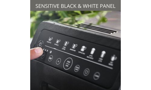 Gebruik de intuïtieve interface om moeiteloos de perfecte koffie te maken, met een gevoelig zwart-witpaneel met sneltoetsen voor dranken en aanpasbare instellingen.