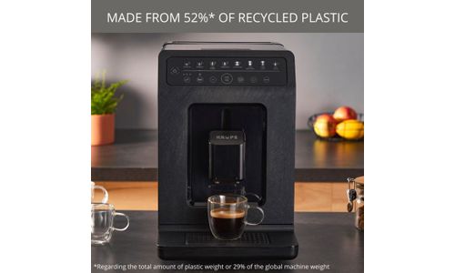 De KRUPS Evidence Eco-Design automatische espressomachine combineert uitmuntende koffiesmaak met een ecologische aanpak. Laat uw favoriete drank volledig automatisch bereiden, met een geoptimaliseerd brouwproces van boon tot kopje en een cappuccinofunctie met één druk op de knop. Je maakt al je favoriete dranken in één of twee kopjes met een hoogwaardig toestel uit 62%* gerecycleerd plastic dat tot 90% recycleerbaar is.