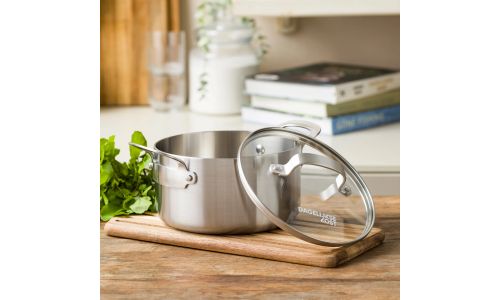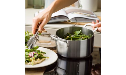 Ontdek de kracht van roestvrij staal met de nieuwe Dagelijkse kost-collectie. Professioneel 3-laags roestvrij staal met een aluminium kern zorgt voor gelijkmatige kook- en bakresultaten. Zet je het vuur hoger of lager? Dan reageren de potten en pannen onmiddellijk. Ideaal voor wie graag kookt met precisie en maximale controle.
