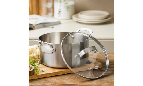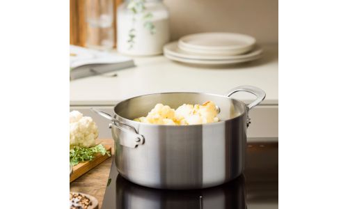 Ontdek de kracht van roestvrij staal met de nieuwe Dagelijkse kost-collectie. Professioneel 3-laags roestvrij staal met een aluminium kern zorgt voor gelijkmatige kook- en bakresultaten. Zet je het vuur hoger of lager? Dan reageren de potten en pannen onmiddellijk. Ideaal voor wie graag kookt met precisie en maximale controle.