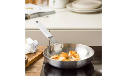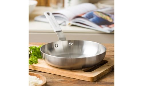Ontdek de kracht van roestvrij staal met de nieuwe Dagelijkse kost-collectie. Professioneel 3-laags roestvrij staal met een aluminium kern zorgt voor gelijkmatige kook- en bakresultaten. Zet je het vuur hoger of lager? Dan reageren de potten en pannen onmiddellijk. Ideaal voor wie graag kookt met precisie en maximale controle.