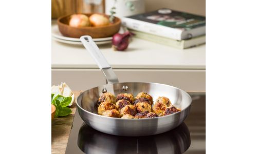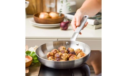 Ontdek de kracht van roestvrij staal met de nieuwe Dagelijkse kost-collectie. Professioneel 3-laags roestvrij staal met een aluminium kern zorgt voor gelijkmatige kook- en bakresultaten. Zet je het vuur hoger of lager? Dan reageren de potten en pannen onmiddellijk. Ideaal voor wie graag kookt met precisie en maximale controle.