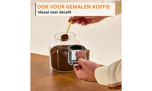 Één enkele beweging is genoeg om een espresso of lungo te starten. Je past ook de intensiteit aan en gebruikt voorgemalen koffie, ideaal voor cafeïnevrije koffie.