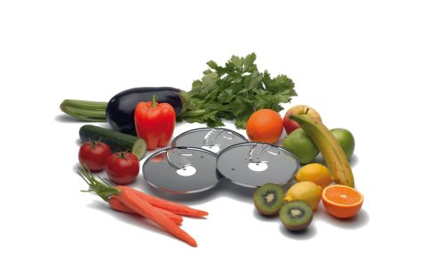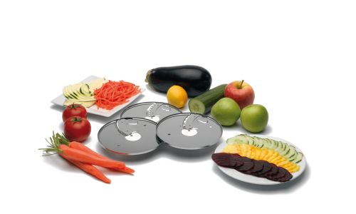 Set van 3 schijven om groenten te snijden op originele manieren, die een chefkok waardig zijn: gegolfde plakjes, reepjes en julienne, geschikt voor groenten en vruchten. Met handige opbergkoffer voor de schijfjes.