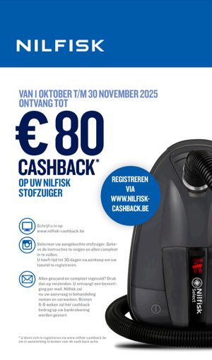 - Alles gescand en compleet ingevuld? Druk dan op verzenden. U ontvangt een bevestiging per mail. Nilfisk zal nu uw aanvraag in behandeling nemen en verwerken. Binnen 6-8 weken zal het cashback bedrag op uw bankrekening worden gestort.